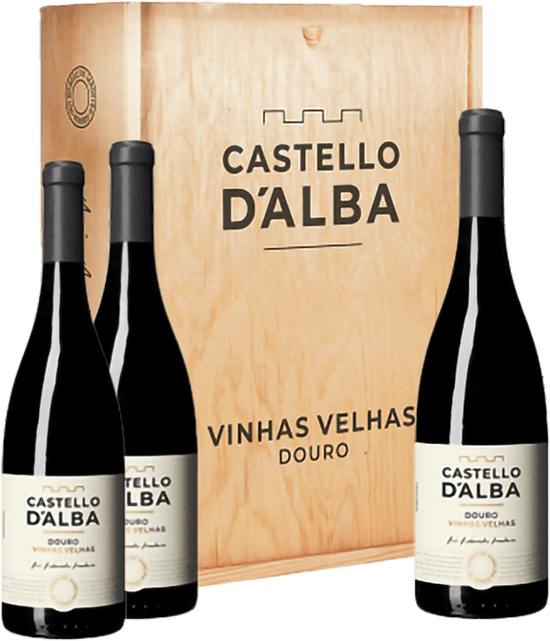 Douro 2017conjunto de 3 Garrafas Castello D'Alba Vinhas Velhas Tinto (0,75L) (Caixa de Madeira). mais